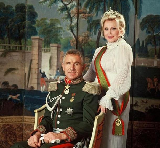 第一任老公是土耳其外交人员,由于感到结婚后的生活无趣离异;第二任老公是希尔顿酒店创办人康拉德·希尔顿;第三任老公是奥斯卡金马影帝乔治·桑德斯;第四任老公是华尔街金融家;第五任老公是一位原油大亨;第六任老公是一位芭比公主室内设计师;第七任老公是帮她和第六任老公离异时请律师打官司的刑事辩护律师;第八任是参演《鲁滨孙漂流记》的男艺人菲利普·德·阿尔巴,这一段婚姻生活可能是人类历史较少的婚外情——1天!