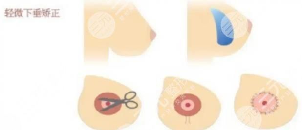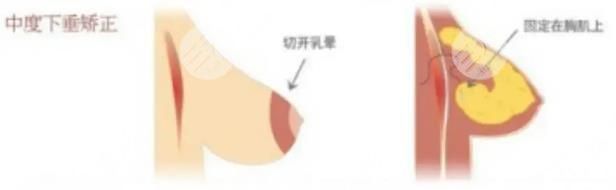 是通过手术操作的方式在乳晕的部位做椭圆状的切口,然后将局部的皮肤和乳腺组织进行剥离,矫正乳头和乳晕的位置,然后再将乳房腺体向上提升固定在胸大肌的筋膜表面。