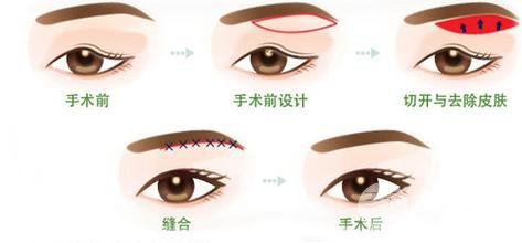 1,如果是年轻或侧面的眼睑松弛轻的人,可以用来形成双眼睑嵌线的方法,设计线为低外面的高级。