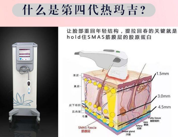 热玛吉是一种新型的医疗设备,也是医美行业内皮肤美容的重点项目。是采取单极射频美容设备,通过专业仪器放射出热能,对于皮肤进行作用,此时皮肤深层的胶原蛋白就会被激活,落实胶原蛋白重建,就会出现除皱,面部年轻化的果。