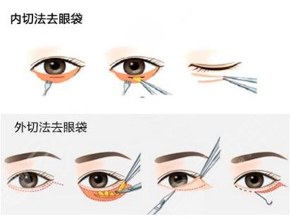 去眼袋手术一般分为了两种,一种是内切去眼袋方法,另一种就是外切去眼袋方法。内切去眼袋方法一般要翻开眼皮,在结膜的位置处做一个小孔,然后将眼袋下眼眶的脂肪取出来,这种手术的方法场产生的刀口比较小。而且为了防止在手术后会有摩擦眼球的现象出现,一般在手术后不会缝线,手术恢复也比较快,在三天左右伤口就可以愈合。