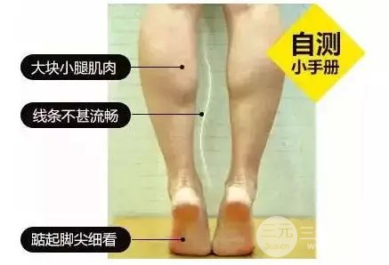 准备一个长身镜,垫起脚尖、脚跟离地,检查小腿腿部线条,若肌肉线条不流畅,某块肌肉用力产生大肌,就属于肌肉型小腿。