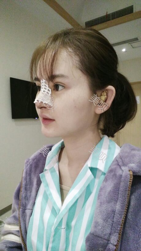 鼻子现在是包着的,还用海绵塞着鼻孔的,我昨天睡觉都是用的嘴巴呼吸的,现在包着的,我还看不见我自己现在的鼻子是什么样子的,是什么形状的,医生说叫我用冰敷小鼻子,我都照做了,医生还交代了很多术后注意事项,反正现在楼主我是蒙的。