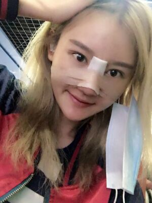 鼻子拆线了,感觉轻松多了,能看出来鼻子已经很精致了,整个脸都好看了呢,只是还有点肿。