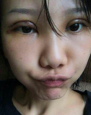 第三天左眼没右眼那么肿,看着就有点不对称。