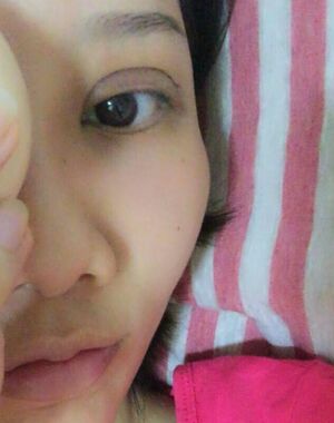 化了妆的术前照片,虽然眼睛还是比较大,但是快看不到双眼皮了。