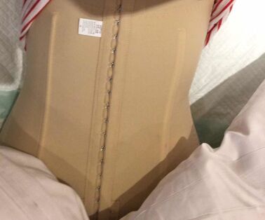 十天的时候去医院拆了线,摸着肚子有点硬硬的,得等它慢慢恢复,穿上塑身衣感觉腰腹是瘦了很多,不过脱掉就感觉还是蛮粗的,还没有固定。