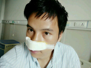 鼻子成这个样子了,用纱布包着,头发都已经油的发亮了,面部看起来也很油,头发是坚决不能洗了,面部还可以用湿巾纸擦一下!悄悄告诉你:我也是一个特备怕疼的人!