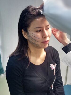 医生在我脸上画了一些线,应该是埋线的走向。