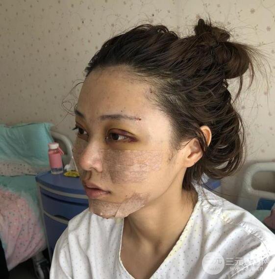手术其实挺简单的,醒来以后脸就被包成这样了,做完感觉线条流畅了很多,不过现在还稍微有些肿,期待脂肪吸收后的果